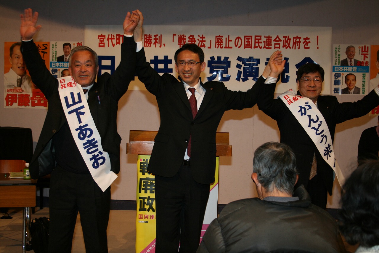 日本共産党宮代町委員会は17日(日)、2月におこなわれる町議選挙での勝利をめざして、進修館小ホールで演説会を開催しました。